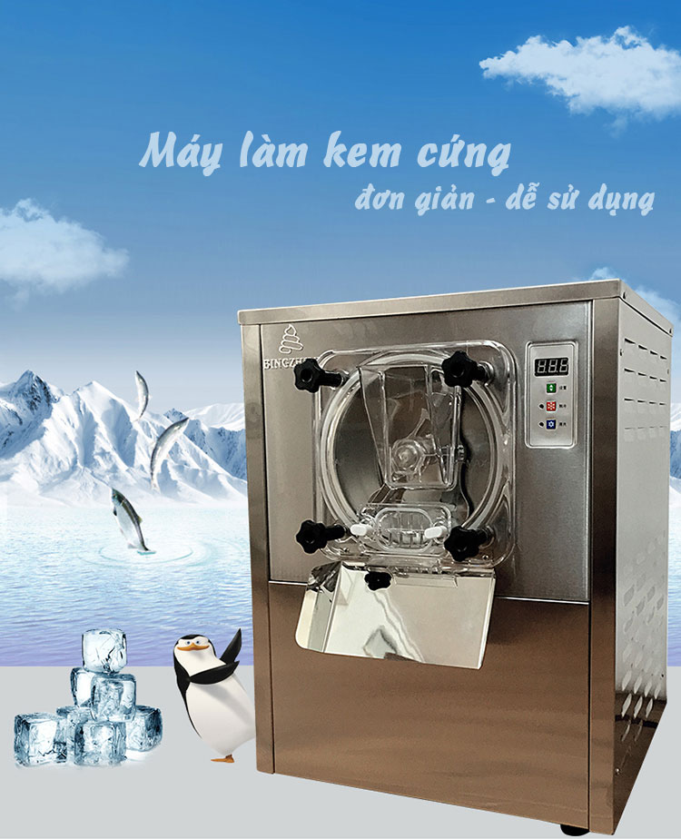 Kem cứng được nhiều chủ đầu tư chọn làm mặt hàng kinh doanh trong mỗi mùa hè đầy nắng. Đặc điểm của máy làm kem cứng là có thể sản xuất được các loại kem cứng đạt chuẩn chất lượng cao. Hệ thống làm lạnh nhanh, tiết kiệm điện năng và đặc biết rất dễ sử dụng. Chỉ cần 1 túi bột làm kem thêm chút sữa và hương liệu phù hợp là bất kỳ ai cũng có thể mang kem cứng làm sản phẩm kinh doanh trên thị trường.