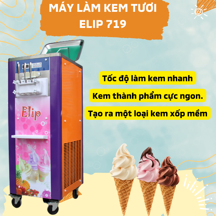 - Máy làm kem tươi Elip BQ719 giúp bạn tạo ra kem tươi dễ dù bạn mới bắt đầu làm, bạn chưa có kinh nghiệm. Ngoài ra đội ngũ nhân viên công ty có nhiều năm kinh nghiệm sẽ tư vấn và chuyển giao công nghệ nhanh chóng giúp bạn nắm được công thức làm kem tươi mở quán kem nhanh chóng